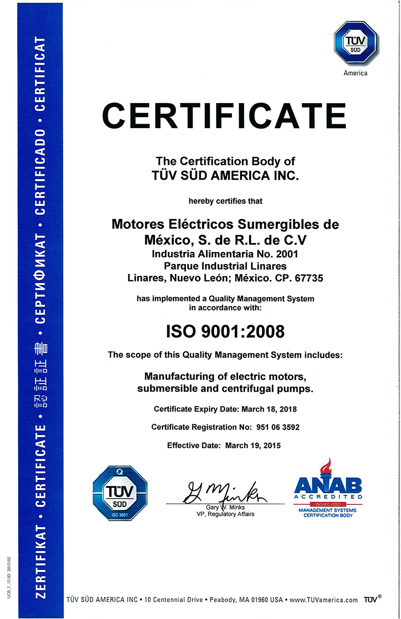 ISO 9001 Wilburton Franklin Electric Co. Inc 2016_03_03